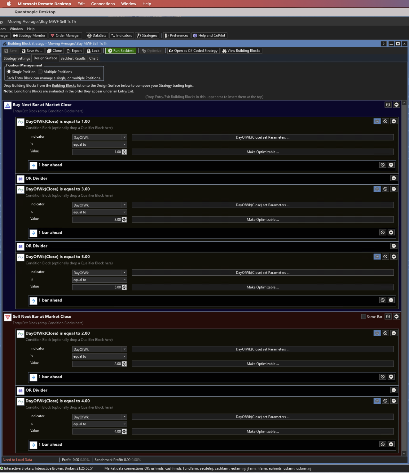 QUOTE:I already explained why that it's wrong to have expected that. Just run the strategy and you'll see that it [almost] never buys on Monday. It will buy on Monday only if Friday was a holiday.