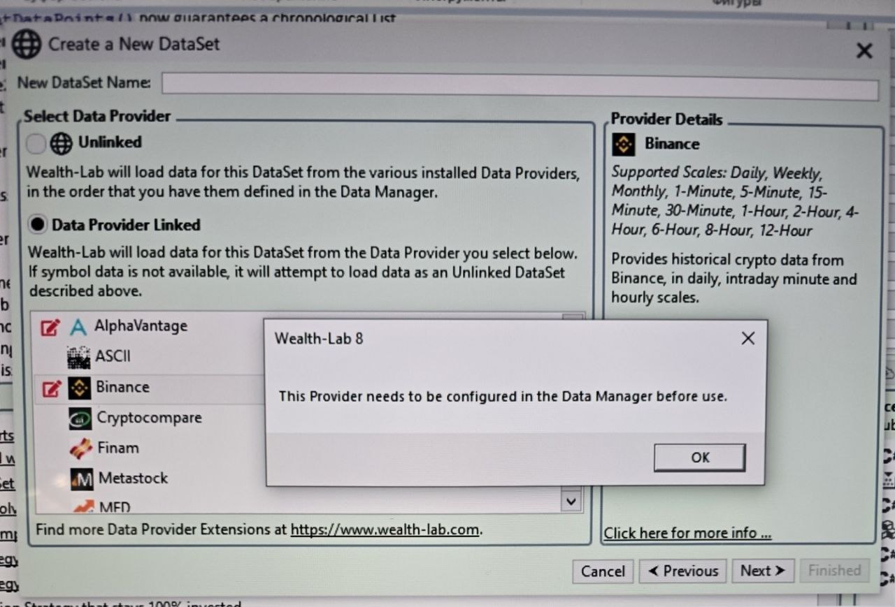But isn't the message pretty self-explanatory i.e. open the DATA MANAGER to set up the (Binance) provider before use?