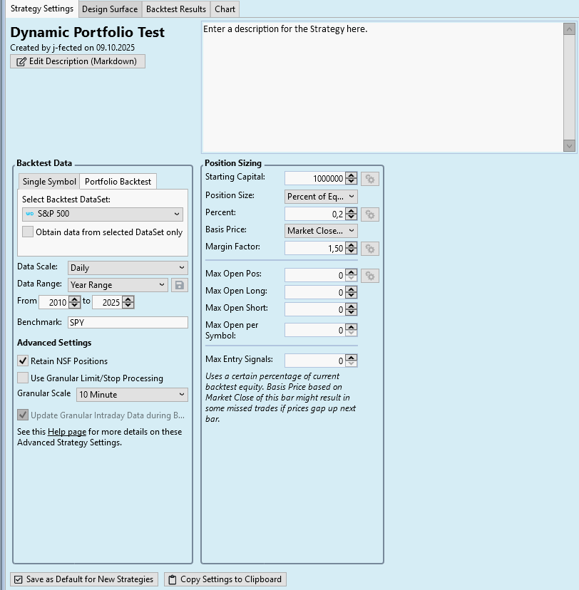 - When I remove the DynamicPortfolio block, the strategy runs without errors.
