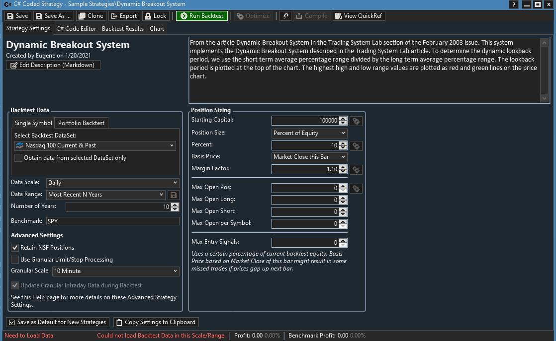5. Run a Sample Strategy on the Norgate data.