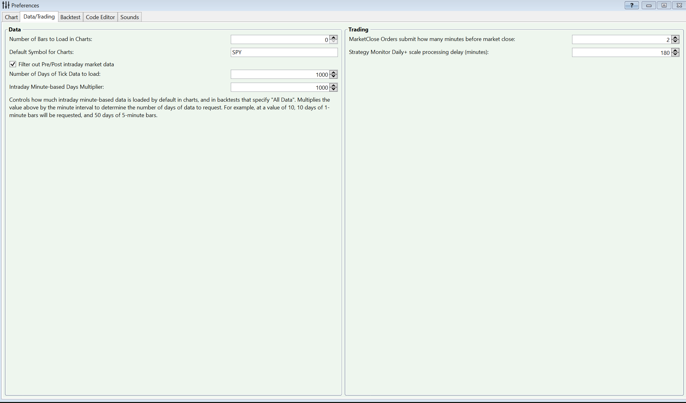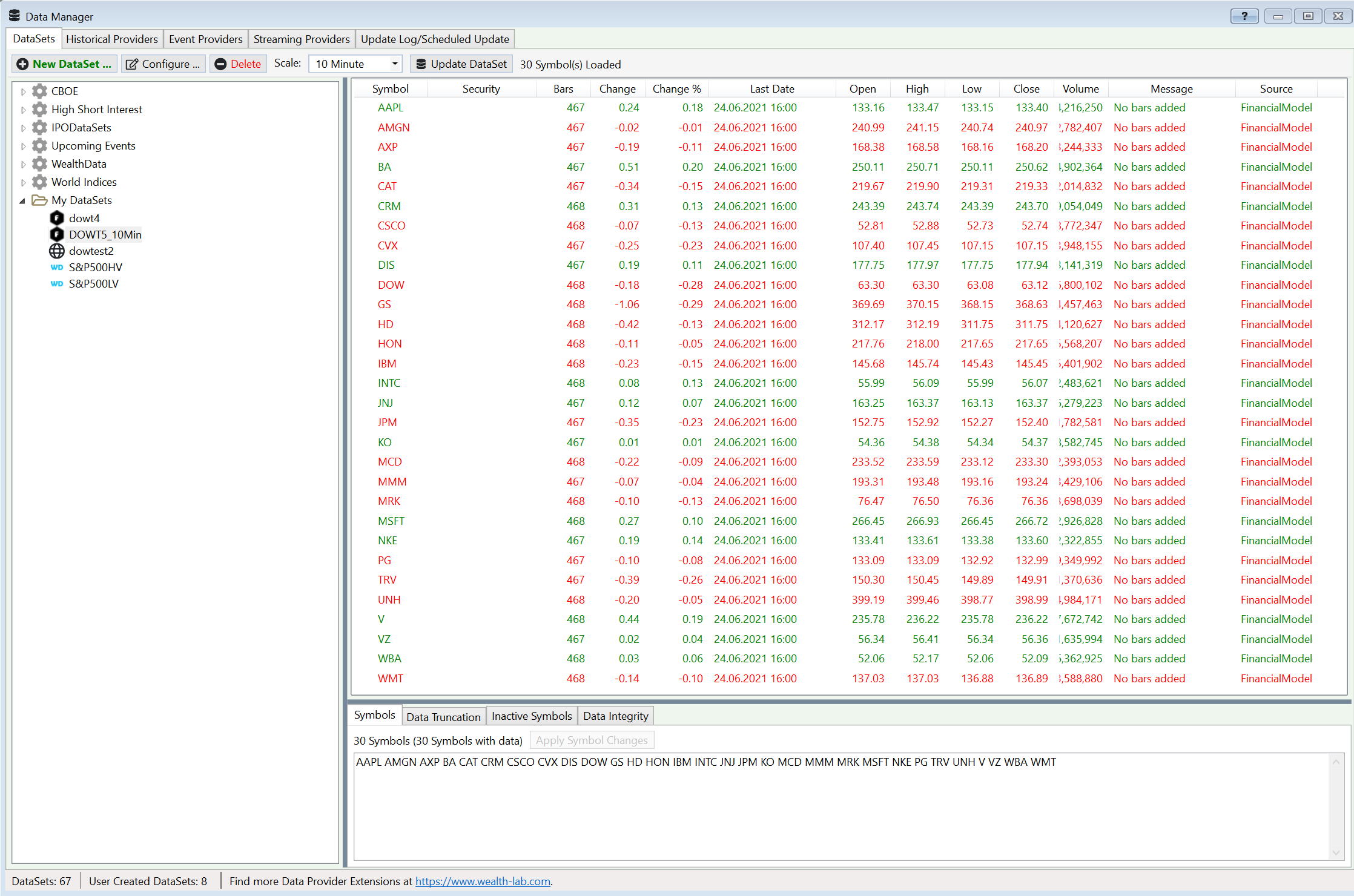 1. in the Datamanager here I can 10 days of 10 minutebars