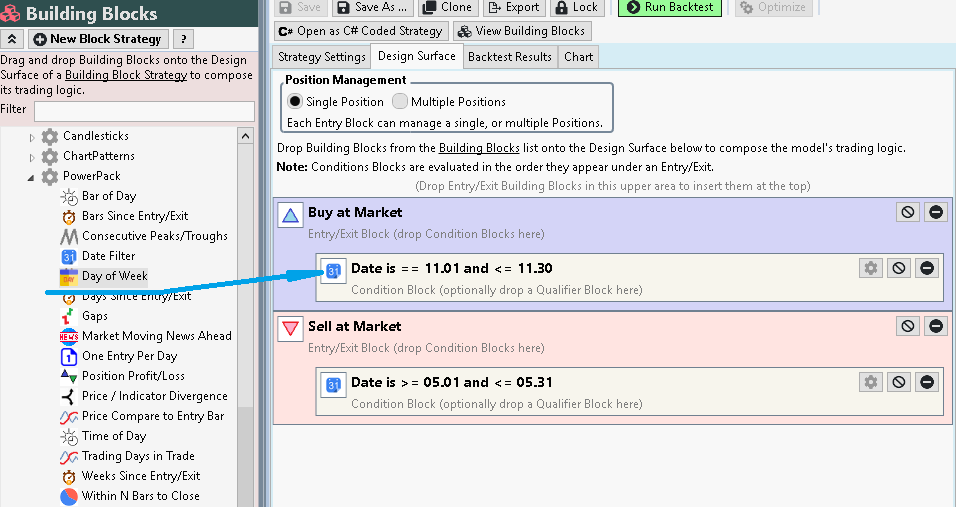 Hello, I want to create a simple strategy of buying on the last day of a certain month, e.g. October, and hold for x number of days.