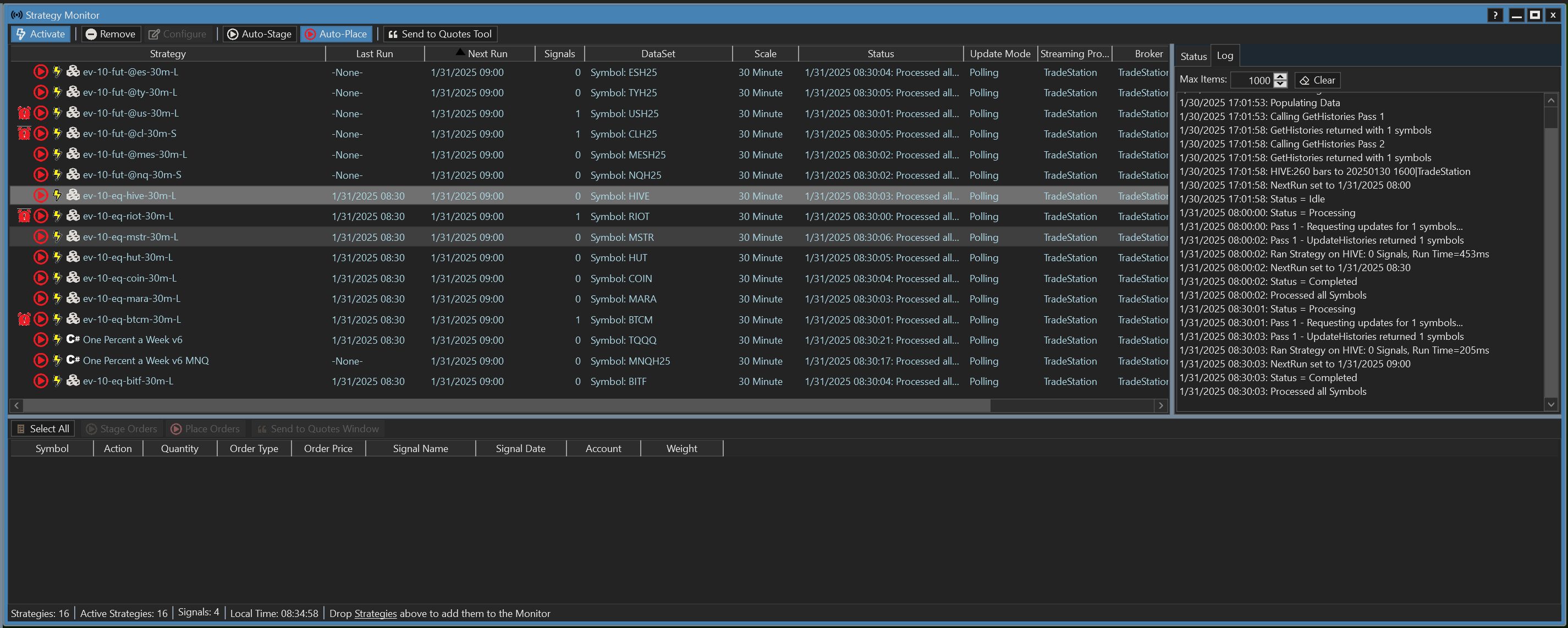 looking at the log strategies appear to be running but in the left pane the last run column does not seem to update.