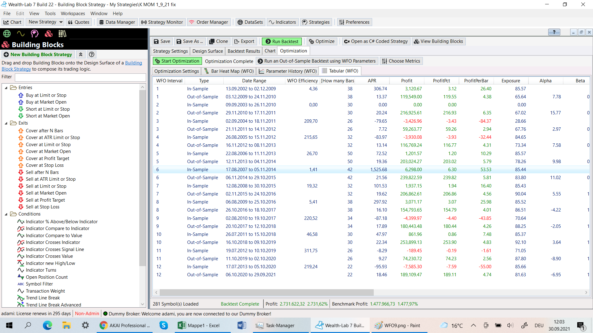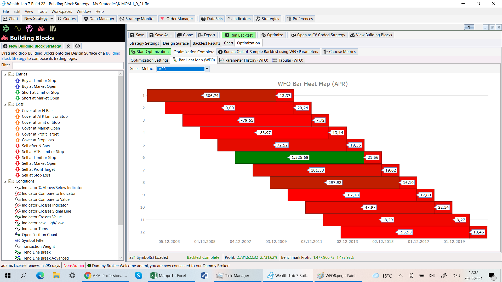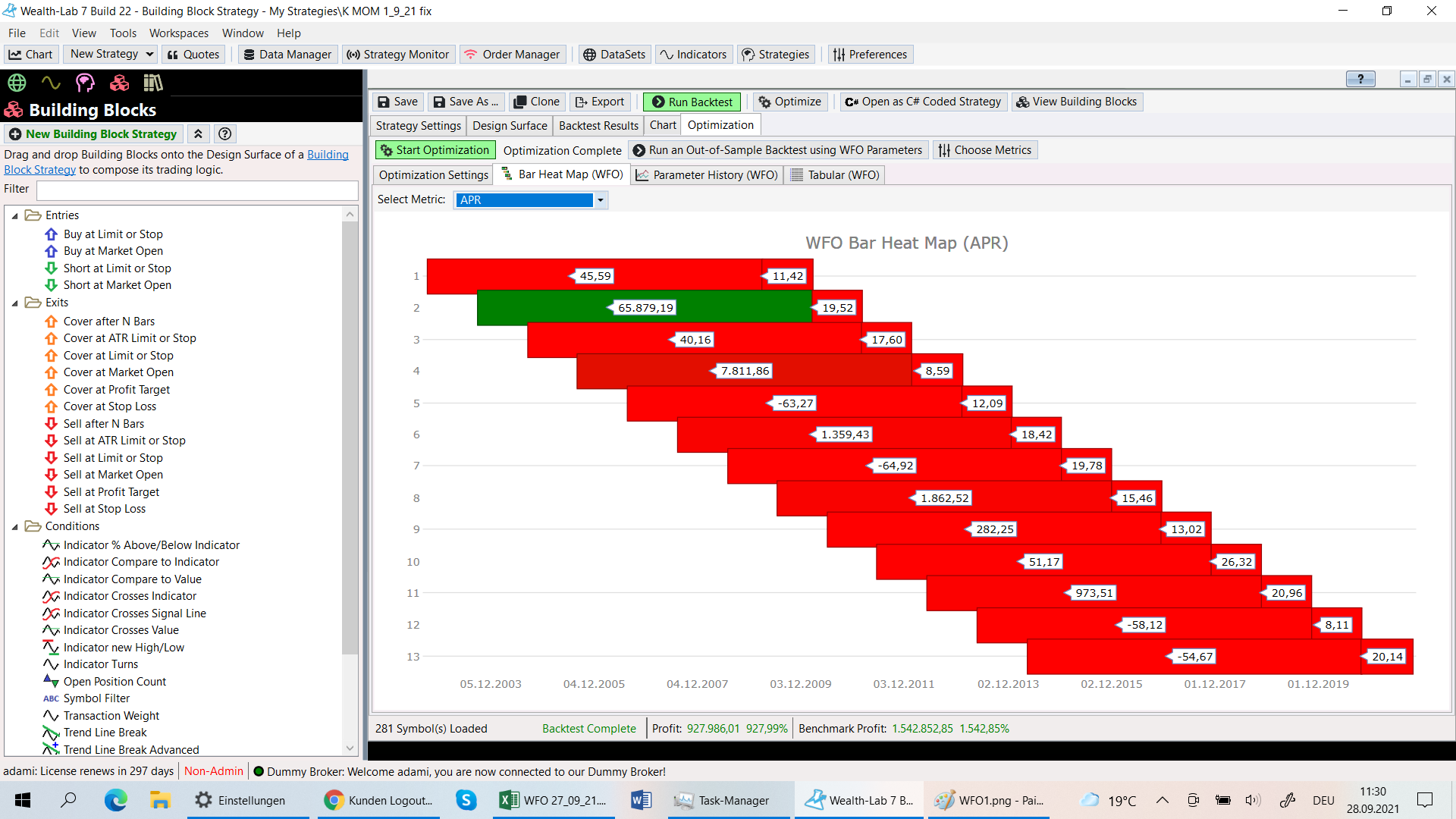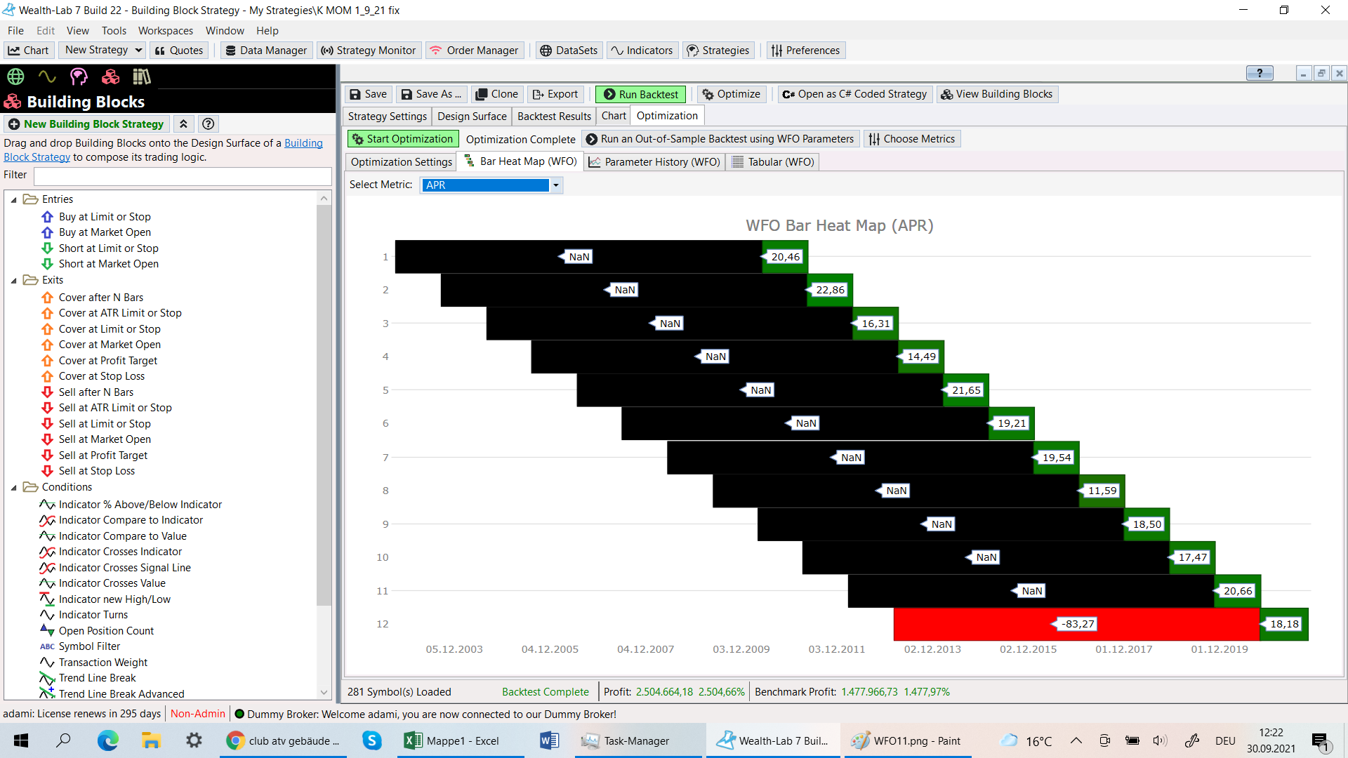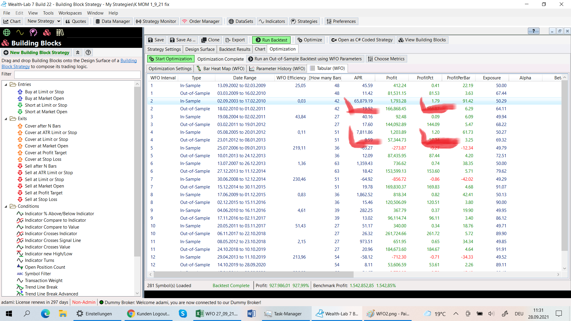 I try to make a WFO with the parameters 13/13 and get very high APR´s.