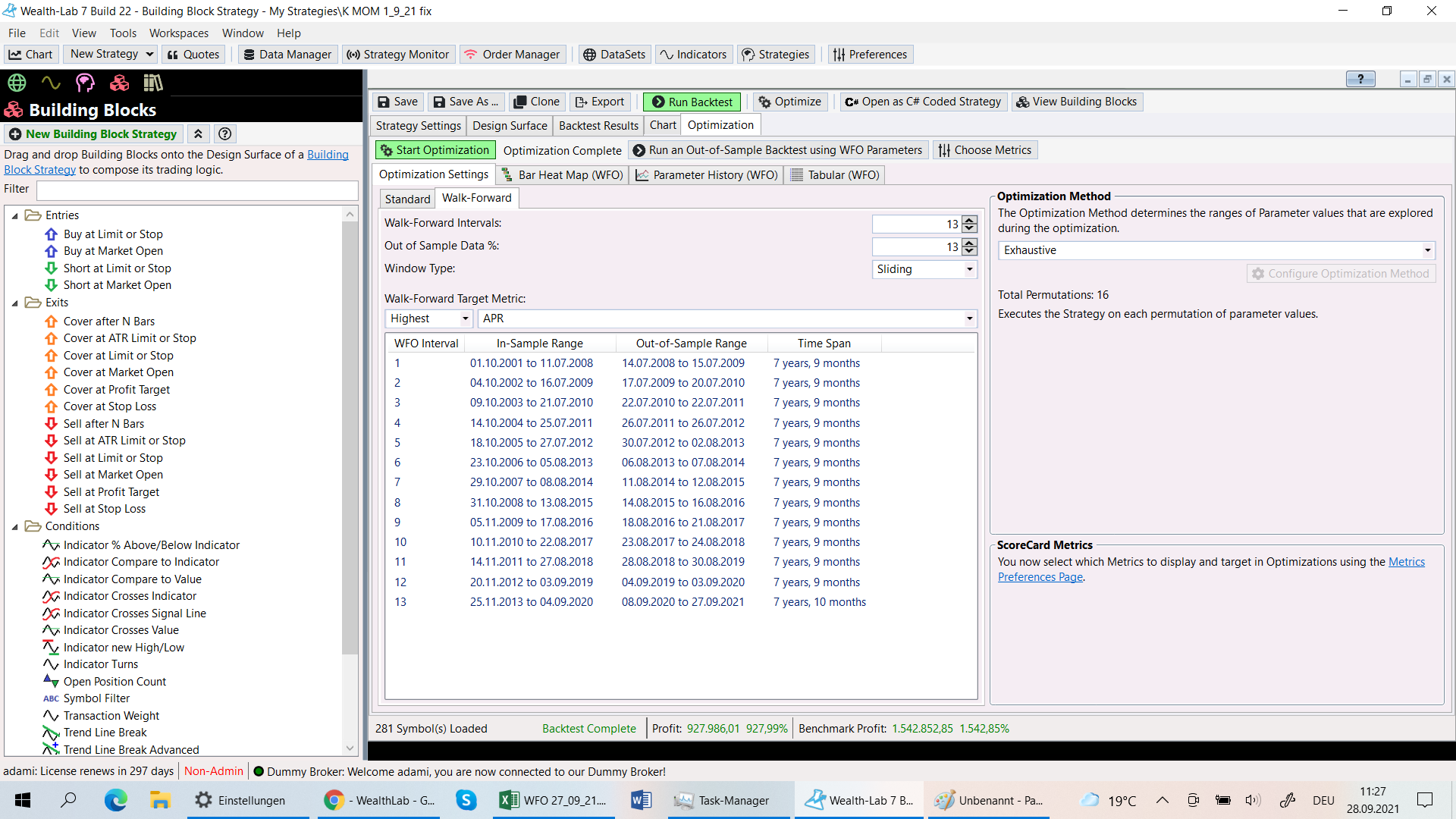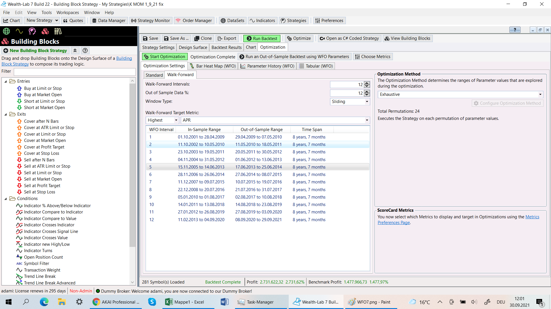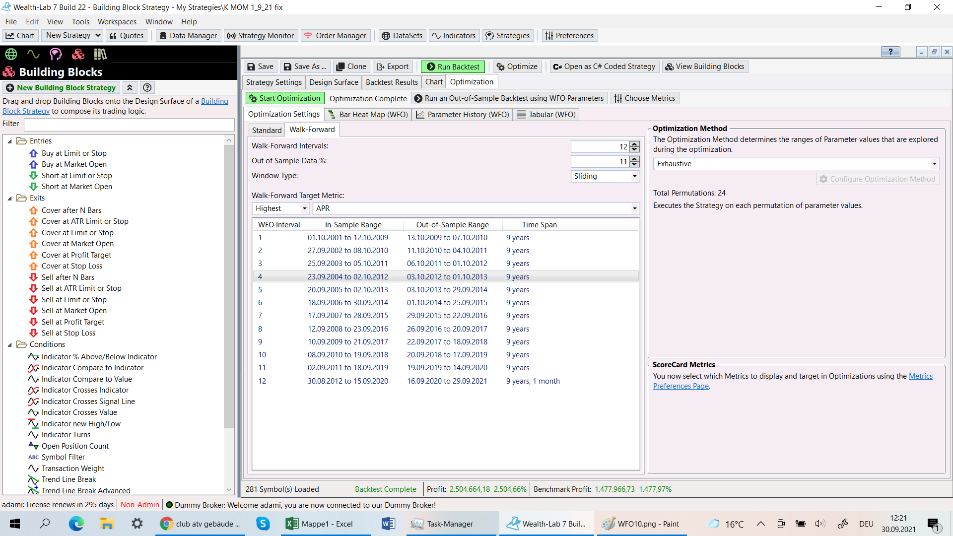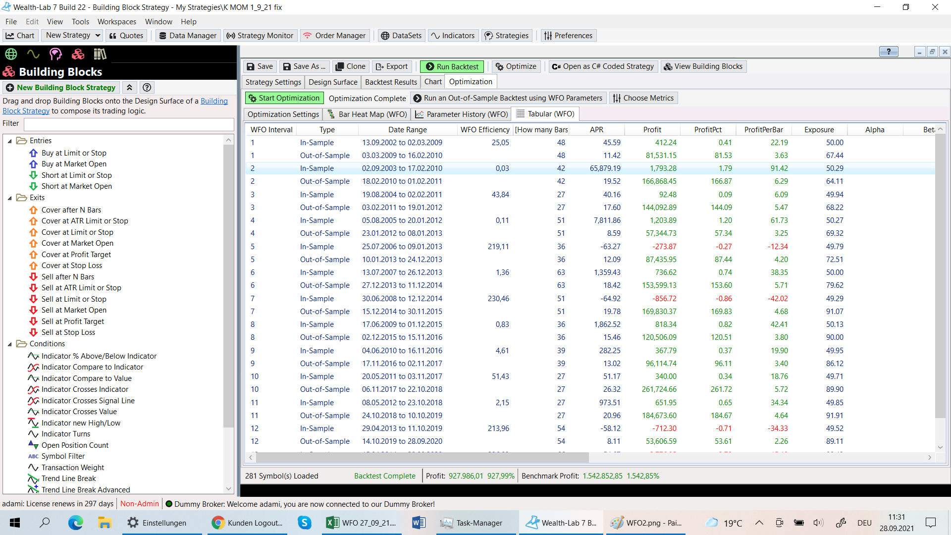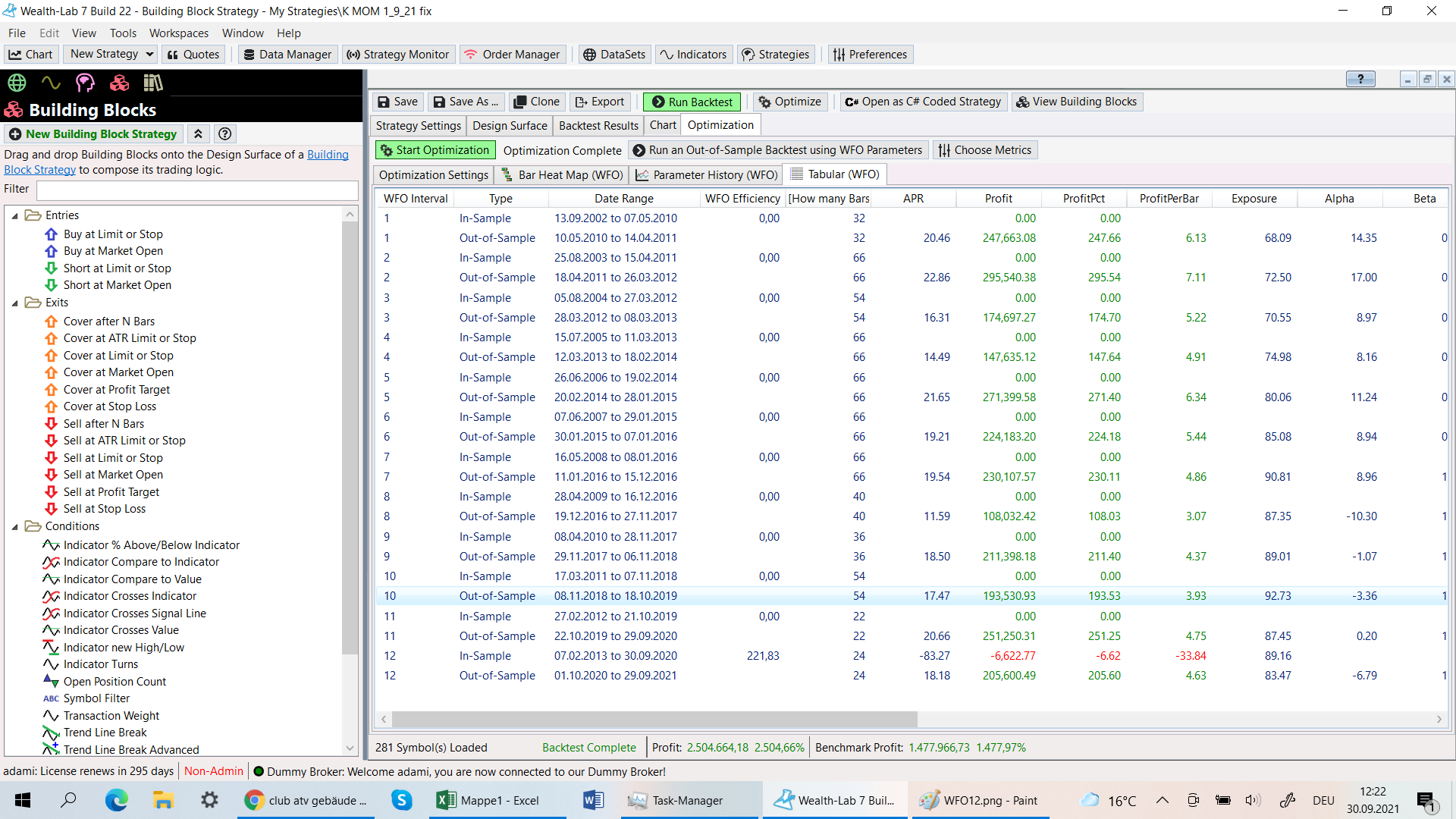 I try to make a WFO with the parameters 13/13 and get very high APR´s.