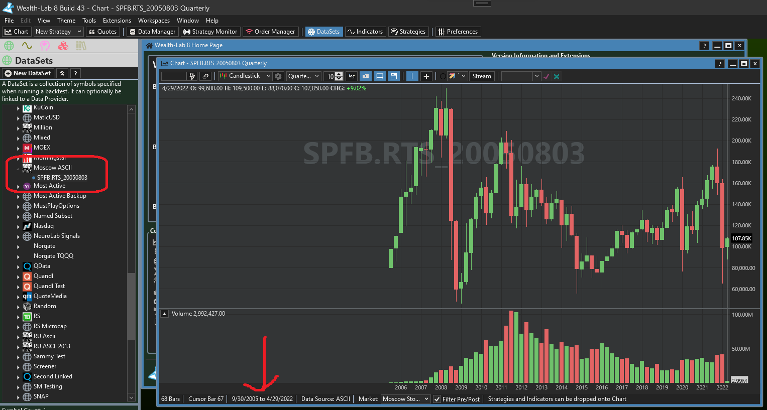 Ok, I put the file in the WL Datasets folder and that resolved it. The data is now showing up in daily, weekly, and monthly format on the chart but it goes away when I choose quarterly. How do I fix that?