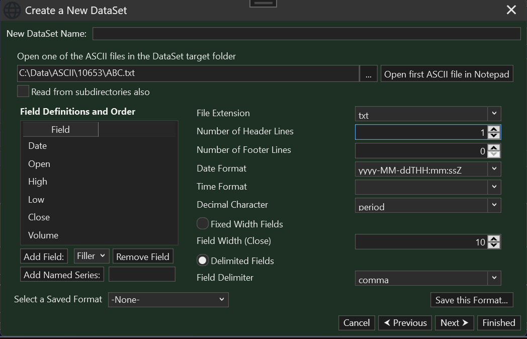 I've tried various alternatives but WL isn't happy with the "T" and "Z" in the date/time string. Any suggestions on how to set up the New DataSet dialog so it accepts the date/time format in my file v gratefully received. Thx