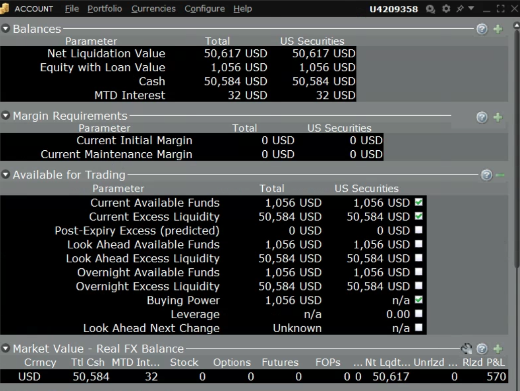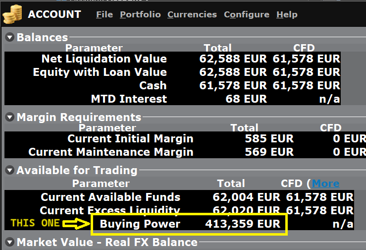 When you check your "Account", what is the value for "Buying Power" under "Available for Trading"? (It will be different than Excess Liquidity.)