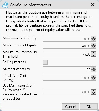 Confirmed. Advanced PosSizers create bogus positions that aren't exited in this MetaStrategy. And since the issue isn't limited to the Meritocratus, I'm renaming the topic.