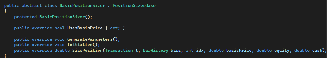 double riskSize = CalculatePositionSize(PositionSizeType.MaxRiskPct, riskPct, bars, basisPrice, equity, idx);