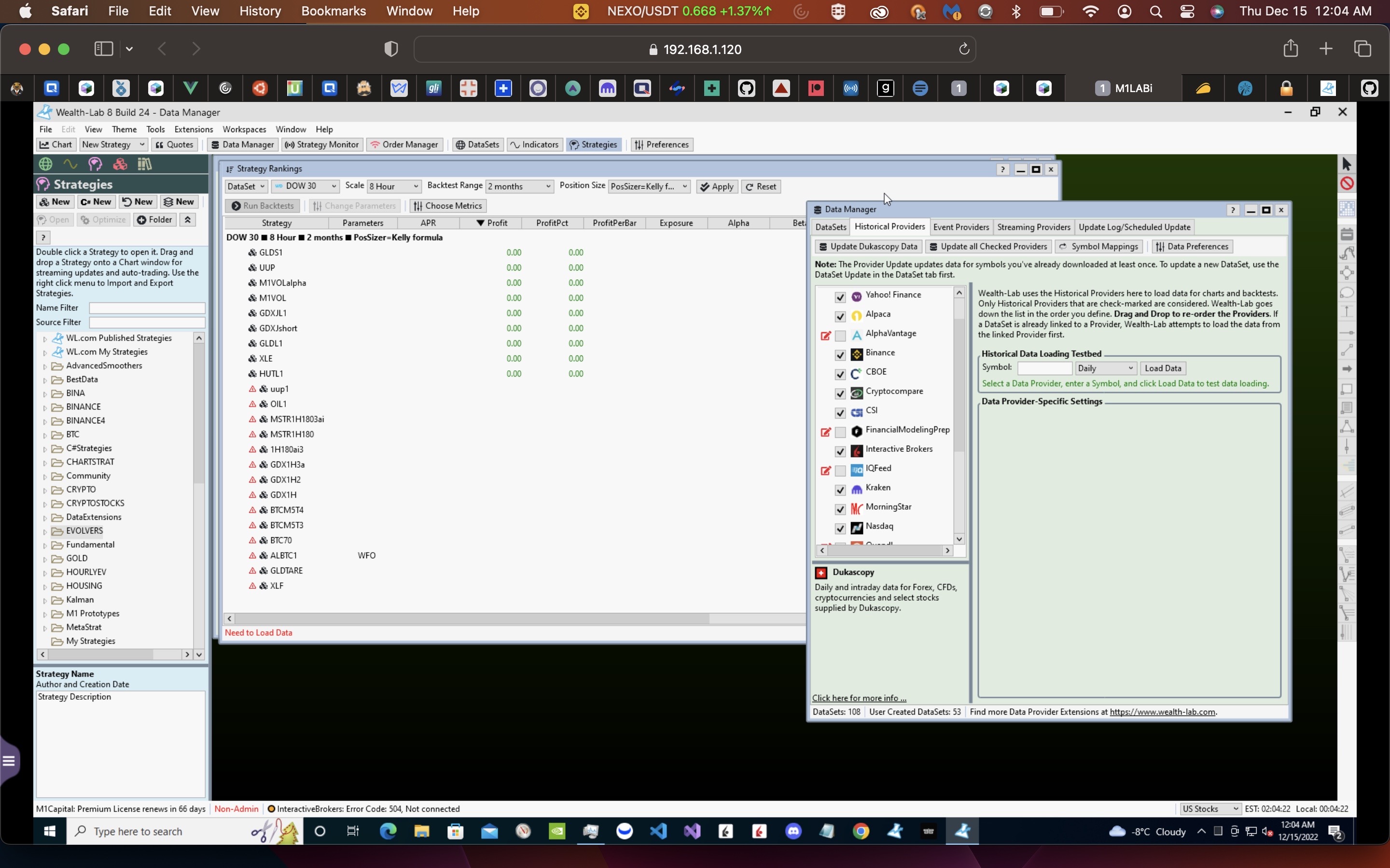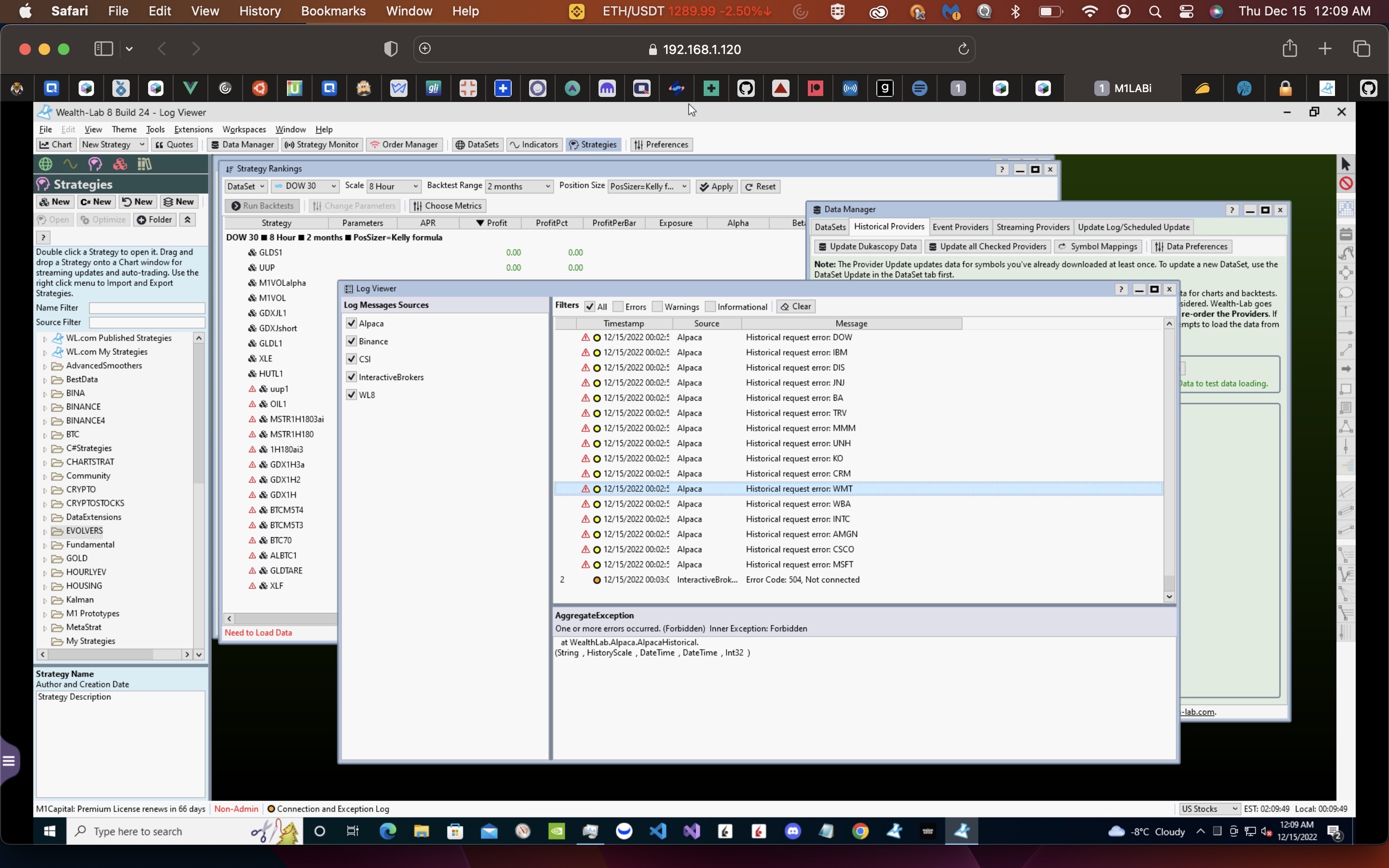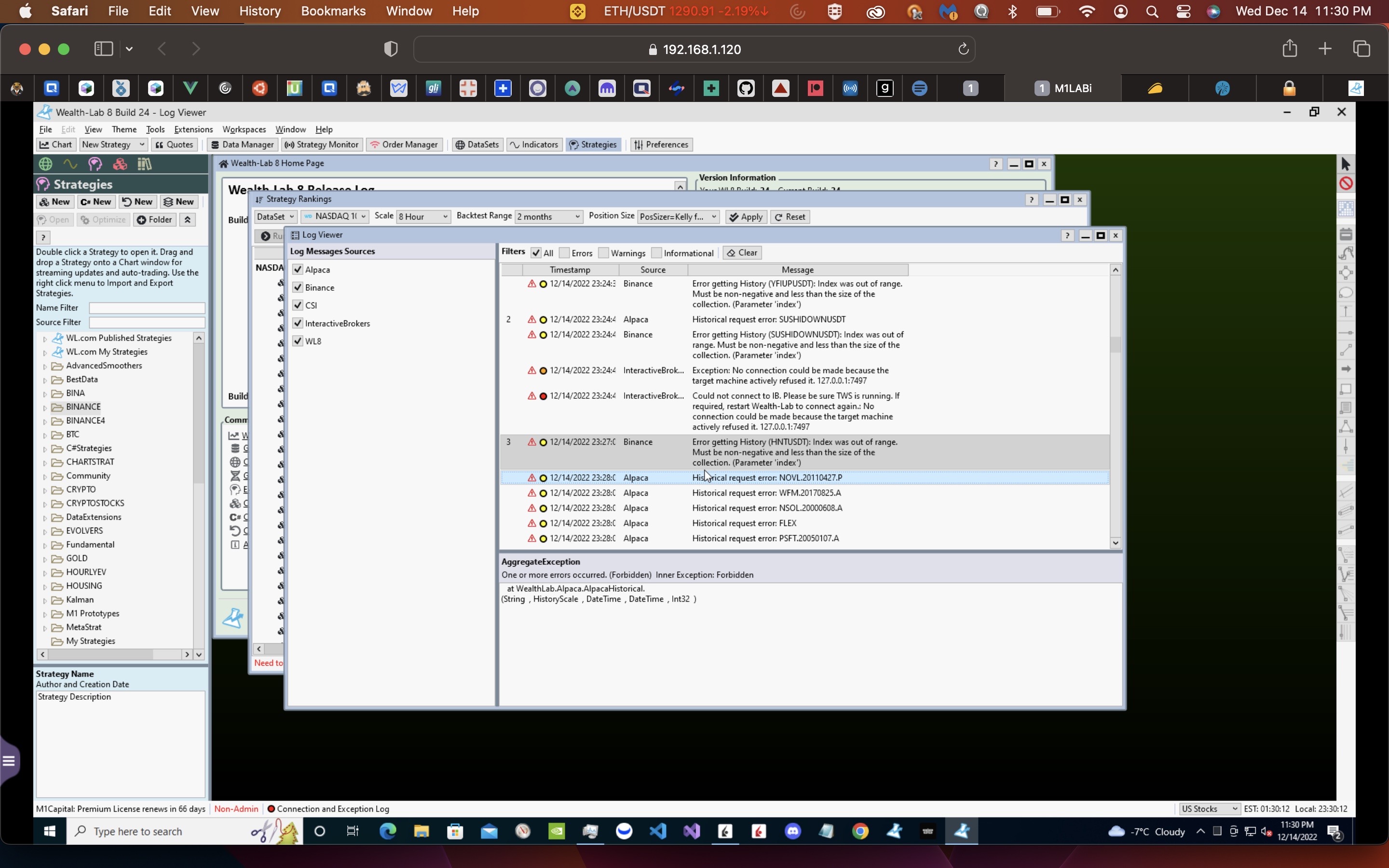I just noticed that the Scale is 8 Hours, so Wealth-Data will do you no good there. Make sure that you have one of your intraday sources checked and connected. In the image, Alpaca and IB are failing to connect.