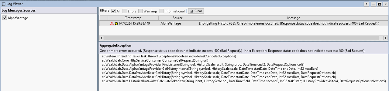 Can you let me know exactly how you got to download all 60 min data from AV for a group of stocks? I've cleared cached data per Post #5, and I still got the same Error 400 for TSLA in Batch 2023. I'm getting Bad Request 400 errors for all the other stocks as well for 60 min data.