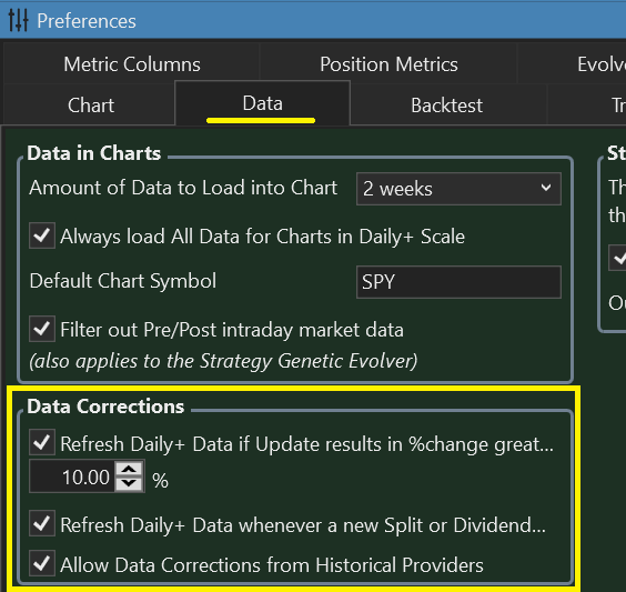 If you uncheck this option, you need to refresh all of your Daily data to remove the adjustments. Then you can select to "Collect Dividends" in the Backtest Preferences. (If the data is already adjusted for dividends, "Collect Dividends" would essentially double-count the benefit.)