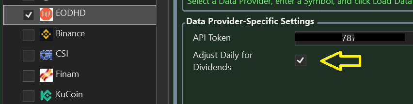Also, by default EODHD has adjusted Daily bars for dividends. The option to not adjust was added in the last update.