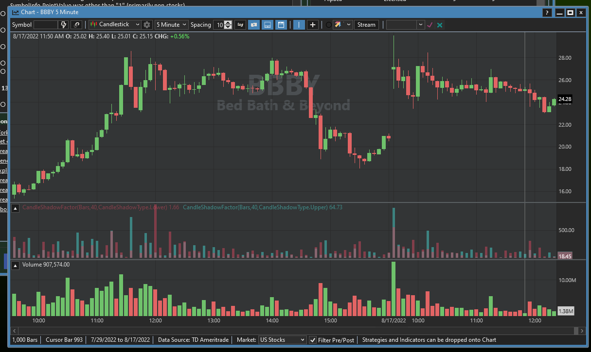 You might find our Candlesticks Extension useful, it has indicators like CandleShadowFactor which tell you how big the upper or lower wick was compared to the average.
