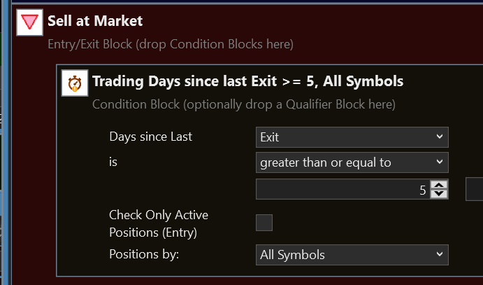 Or, if you change "All Symbols" to "Current Symbol", the "Days since" only applies to the last exit for the current symbol.