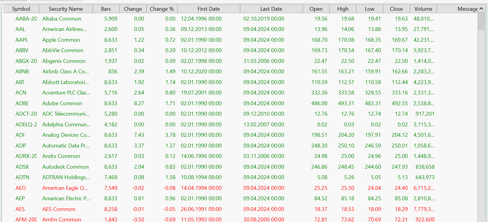 sorry if I describe the question and situation again. Maybe I don't express myself well in English. Please forgive me for this. So, the Wealthlab data is very good and has excellent quality. That's why I want to use them too. I just want to use one track from it. For example, specific stocks from the S&P500 Wealthlab portfolio. And you can do that in Wealthlab using two methods (I think it's great!). The first option is to use the data manager to put together exactly these stocks and the data provider Wealthlab as a portfolio. In my case, a selection of stocks from the S&P 500 that still exist today. A filter, so to speak. And the second option is to directly select the Wealthlab portfolio S&P 500 and enter the stocks in the “Symbol Filter” building block. Also just a filter from the S&P500. Both data sources are the same, right? And therefore the backtest results should be the same, right?