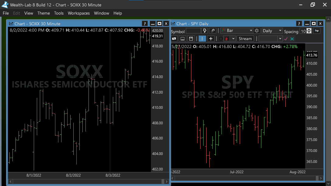Switch a chart to 30-minutes and resize to half screen, as shown here.