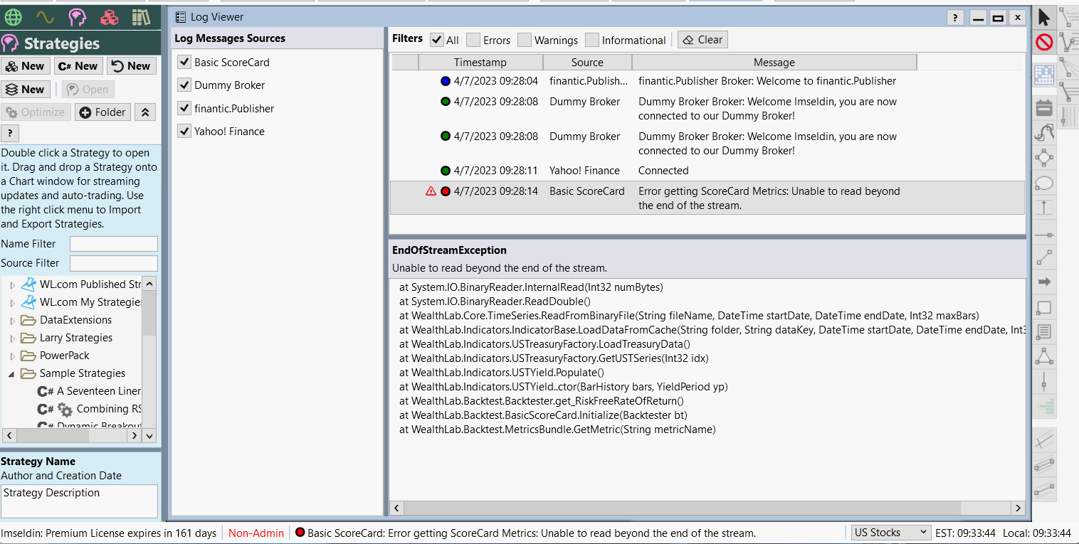 The cache file for U.S. Treasuries data (used in risk-free RoR calculation) is corrupt. With WL8 closed, try to delete this "UST" folder which should be re-created on next start: