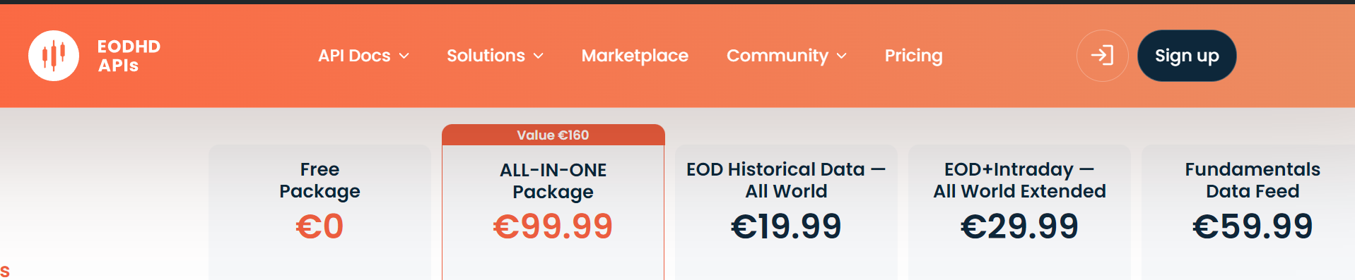 Answer: It's just a guide. Find out what your price is by clicking the convenient links and going to the EODHD site.