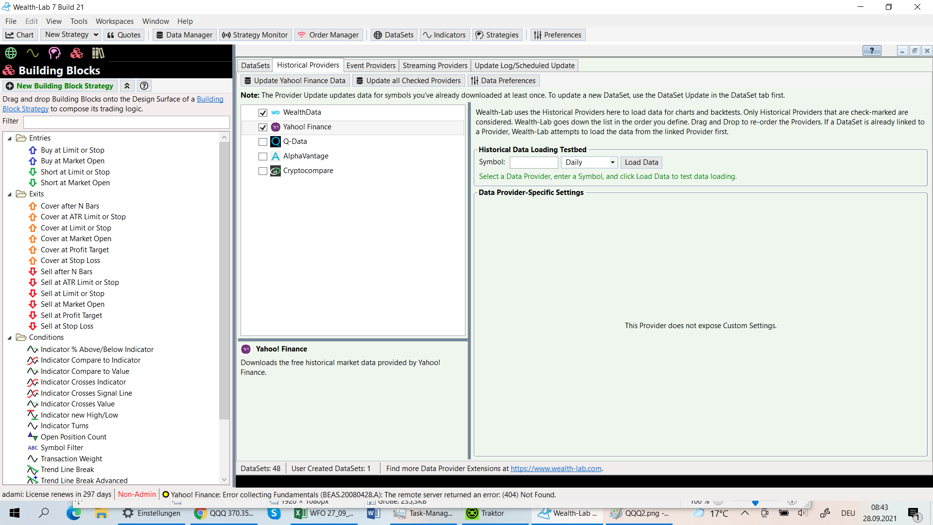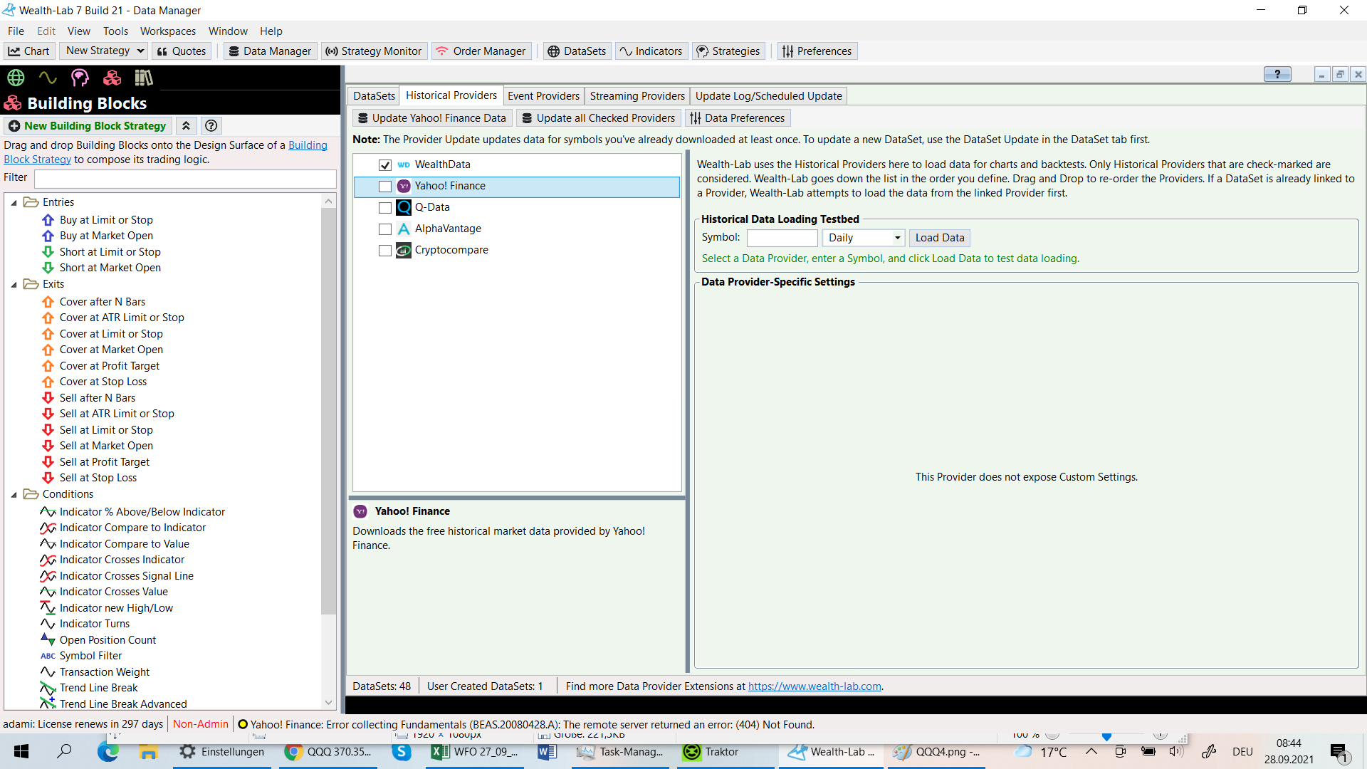 There is a Bug when you change Dataproviders from Yahoo to WL or you check both.