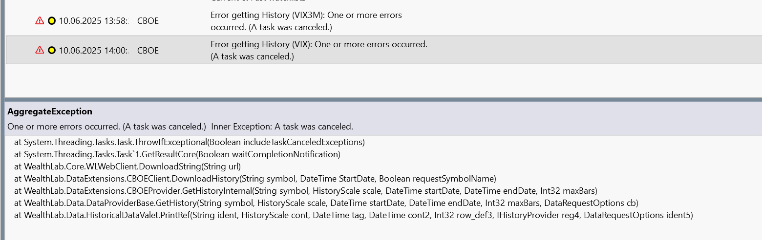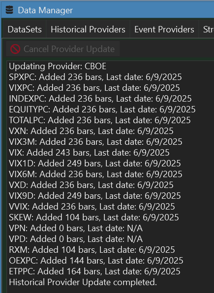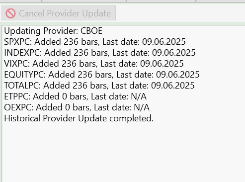 That wasn't the problem. There was a url error for VPN and VPD. There really was no way that the provider could have updated those symbols except for what had been loaded in the cache to 9/26/2024. If you got an update, it came from another source , but it couldn't have been CBOE from Data Extensions.