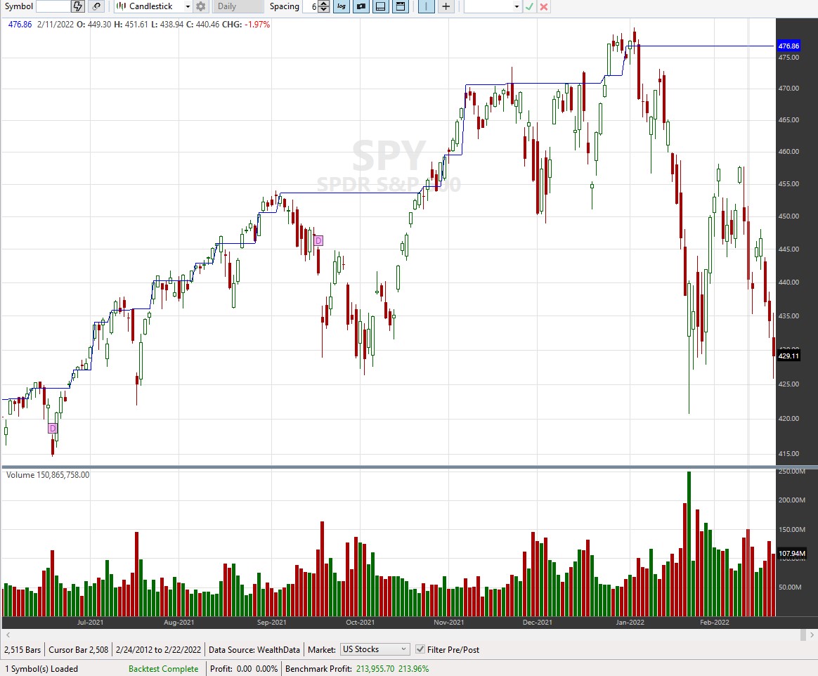 using WealthLab.Backtest; using System; using WealthLab.Core; using WealthLab.Indicators; using System.Drawing; using System.Collections.Generic; namespace WealthScript2 { public class MyStrategy : UserStrategyBase { //create indicators and other objects here, this is executed prior to the main trading loop public override void Initialize(BarHistory bars) { TimeSeries dsHigh = Highest.Series(TimeSeriesCompressor.ToWeekly(bars.High), 52); dsHigh = TimeSeriesSynchronizer.Synchronize(dsHigh, bars); PlotTimeSeriesLine(dsHigh, dsHigh.Description, "Price", Color.Blue, 1, LineStyles.Solid); } //execute the strategy rules here, this is executed once for each bar in the backtest history public override void Execute(BarHistory bars, int idx) { if (!HasOpenPosition(bars, PositionType.Long)) { //code your buy conditions here } else { //code your sell conditions here } } //declare private variables below } }