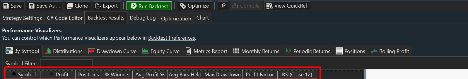 The By-Symbol Visualizer will add a column for each Indicator or TimeSeries that you plotted in the Strategy. To add more columns, you'll need to Plot them in the Strategy code.