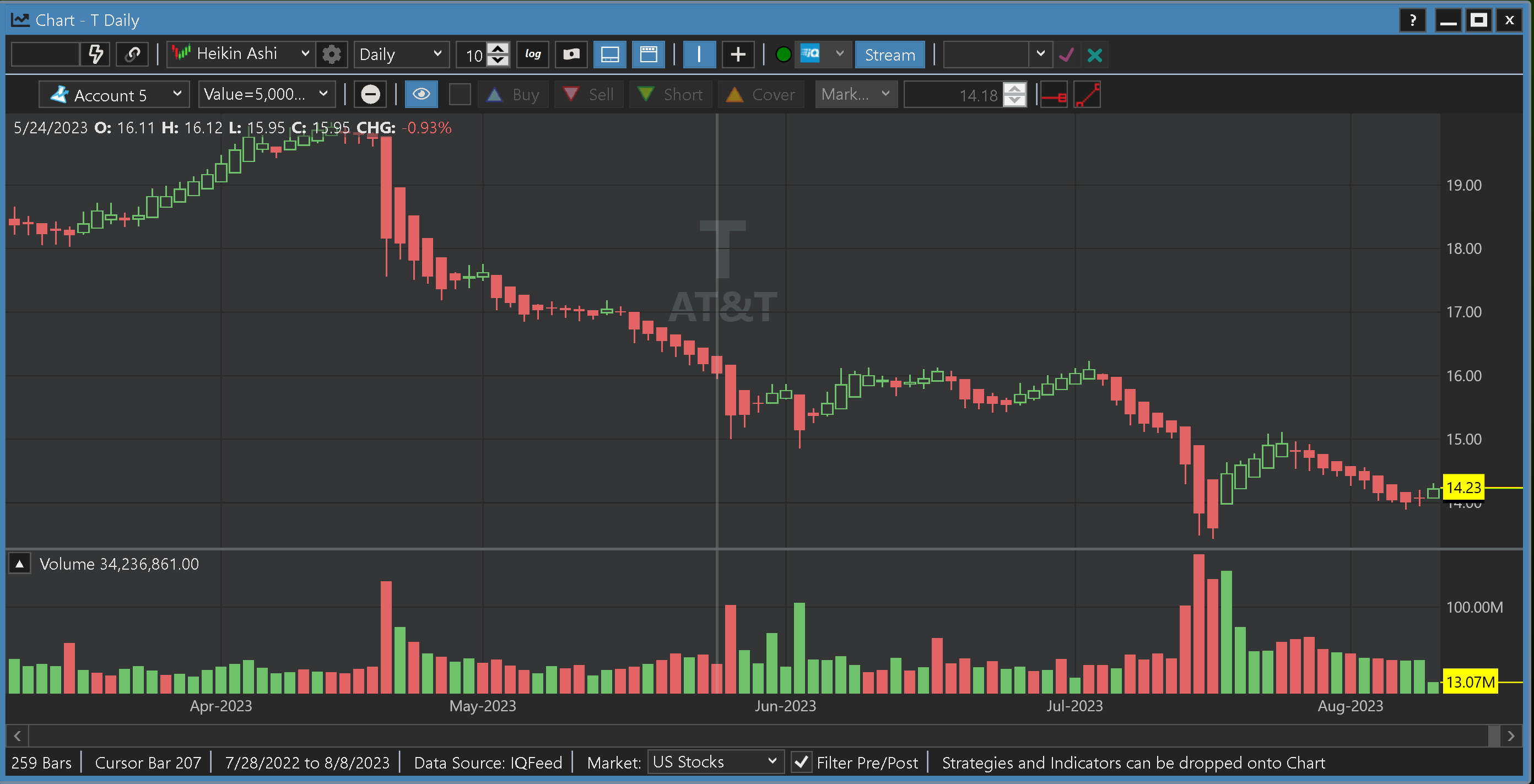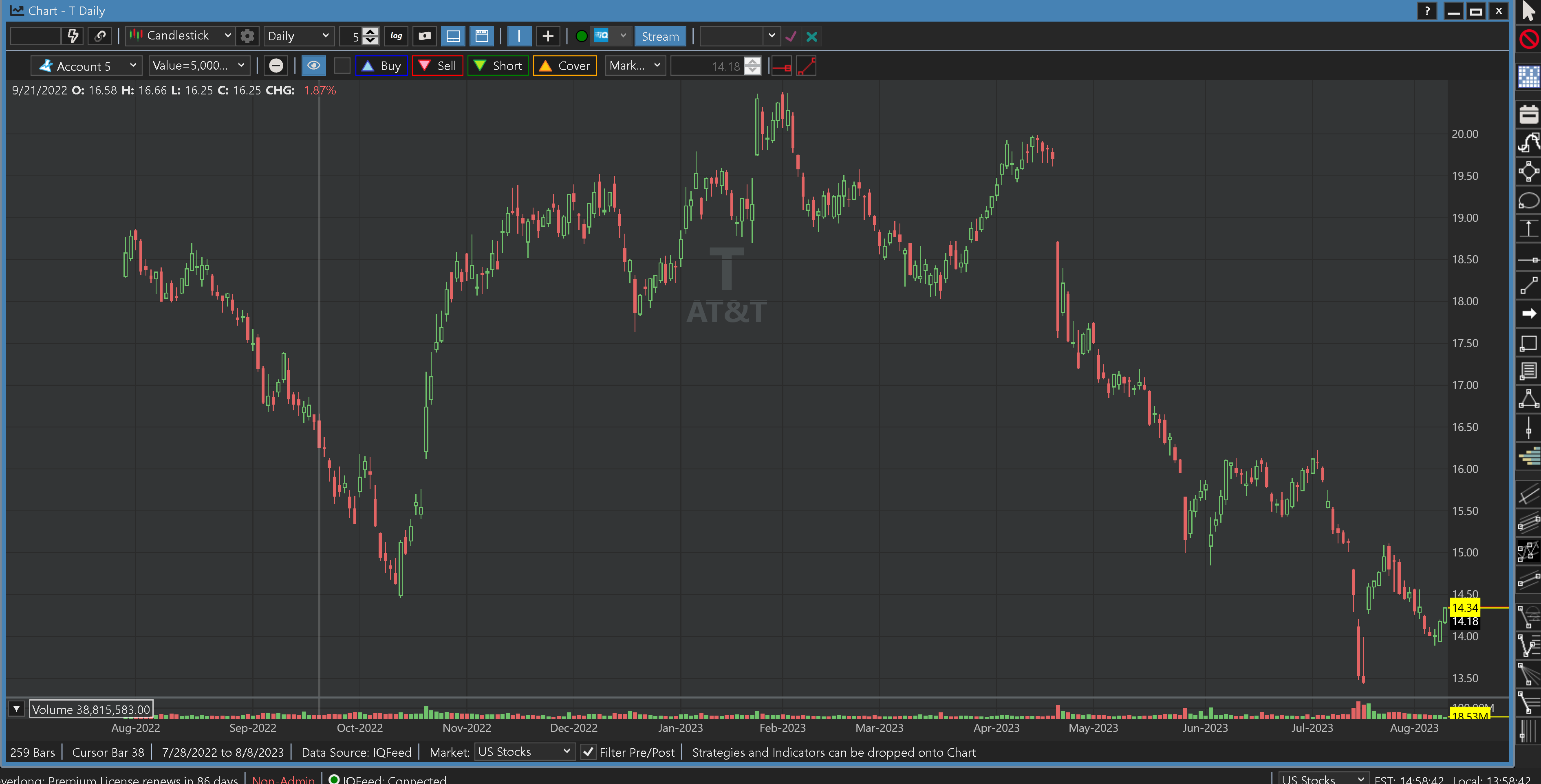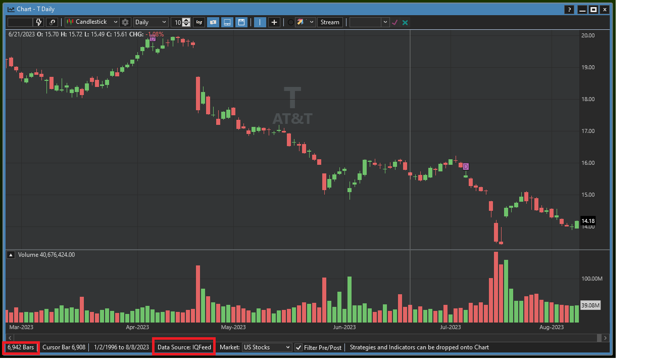 MY TDA account returns 7,857 Daily bars on the WL Historical Data Loading Testbed using Symbol T, but only 250 using IQFeed.