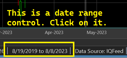 For a chart, click the dates in the bottom of the chart window to adjust them.
