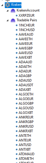 In the help for Kraken, "Once connected, a new Kraken DataSet Provider is automatically created and populated with a list of Tradable Pairs."