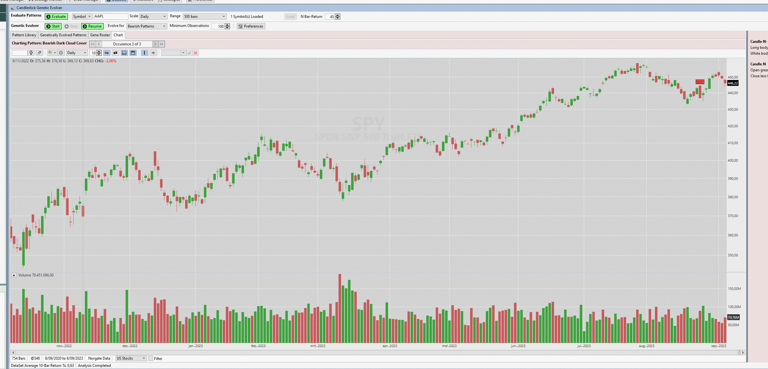 Based on the WL help function in WL8 you should see the pattern (evaluate) on the chart.