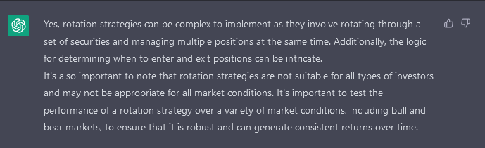 Hopefully, when they finish training it with more fresh data from 2022 onwards, it will get better at coding directly for Wealth-Lab. In the meantime, as shown above, it is already pretty great at C# in general, for it to be very useful to integrate in the development of Wealth-Lab specific strategies.