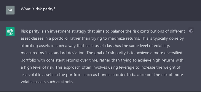 When asked to write a simple trading strategy it came up with a Moving Average Crossover (50, 200) system and the code was pretty accurate.
