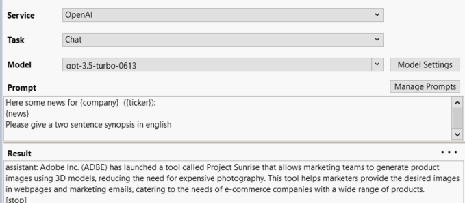 There is now a new extension which leverages (the technology behind) ChatGPT and friends: finantic.NLP (see https://www.wealth-lab.com/extension/detail/finantic.NLP)