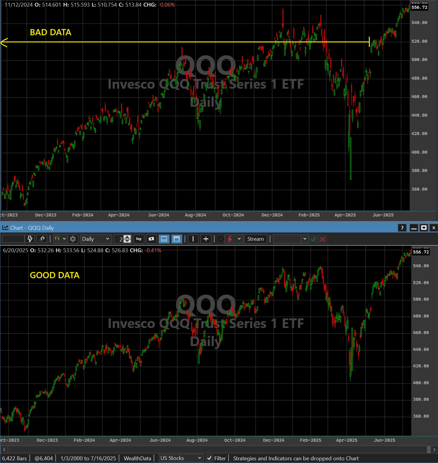 Somehow (and it could just be me) I had Wealth-Data QQQ that looked like this on one of my machines -