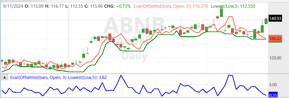 OffsetInd(Open, 3) - Lowest(Low, 5)