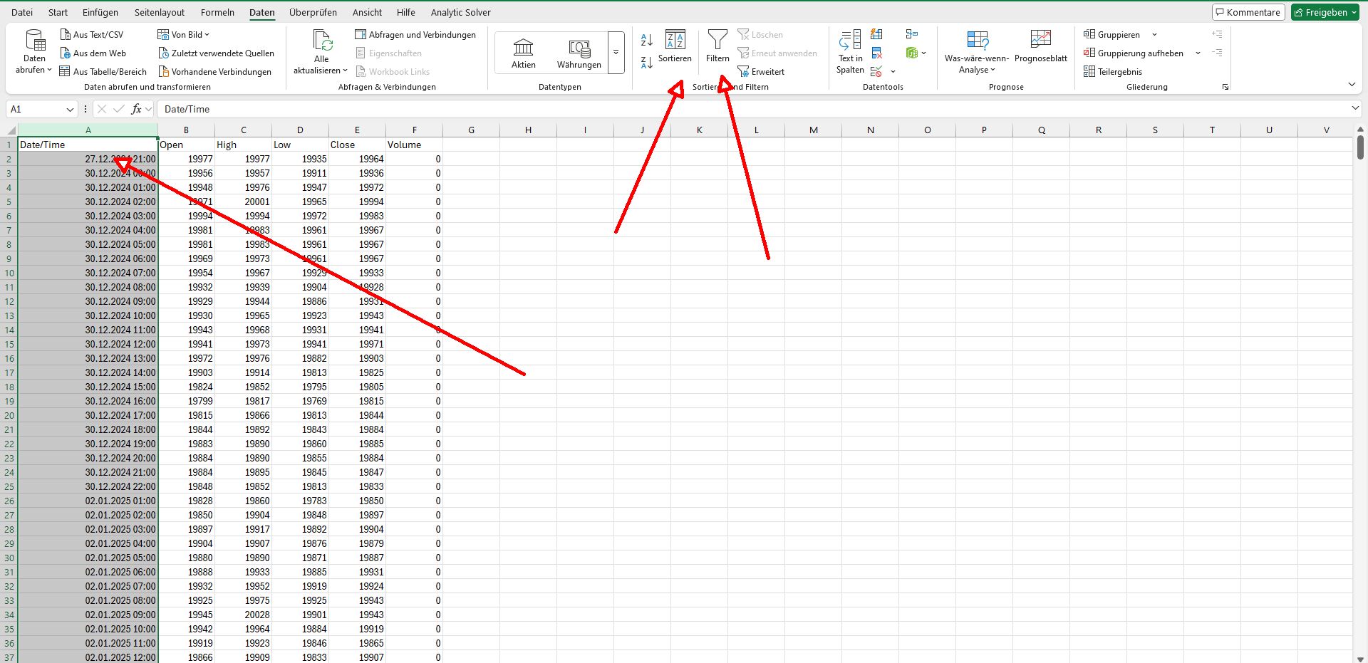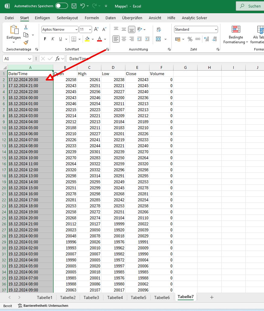 When I copy the price data in Excel, there is no separate field for time!!