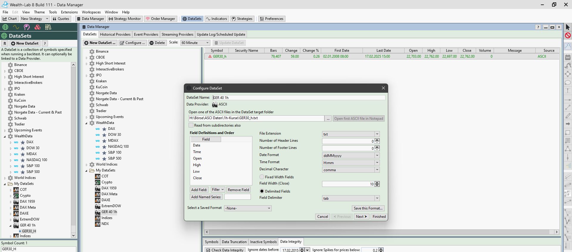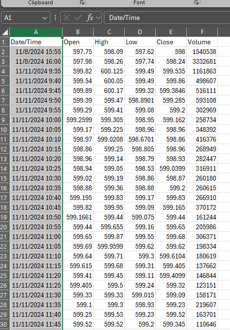 in separate fields. There is only one field for date, time, open, high, close.