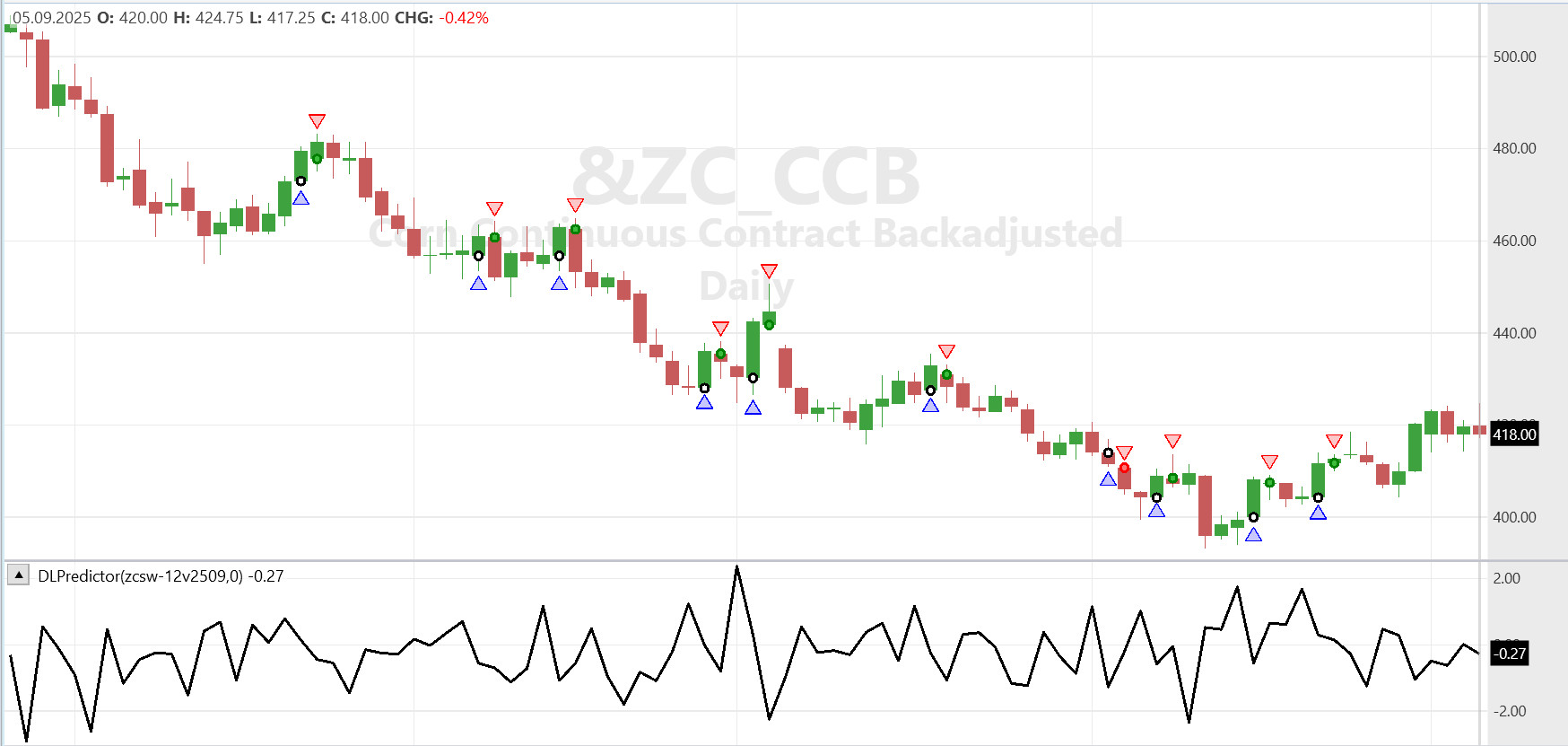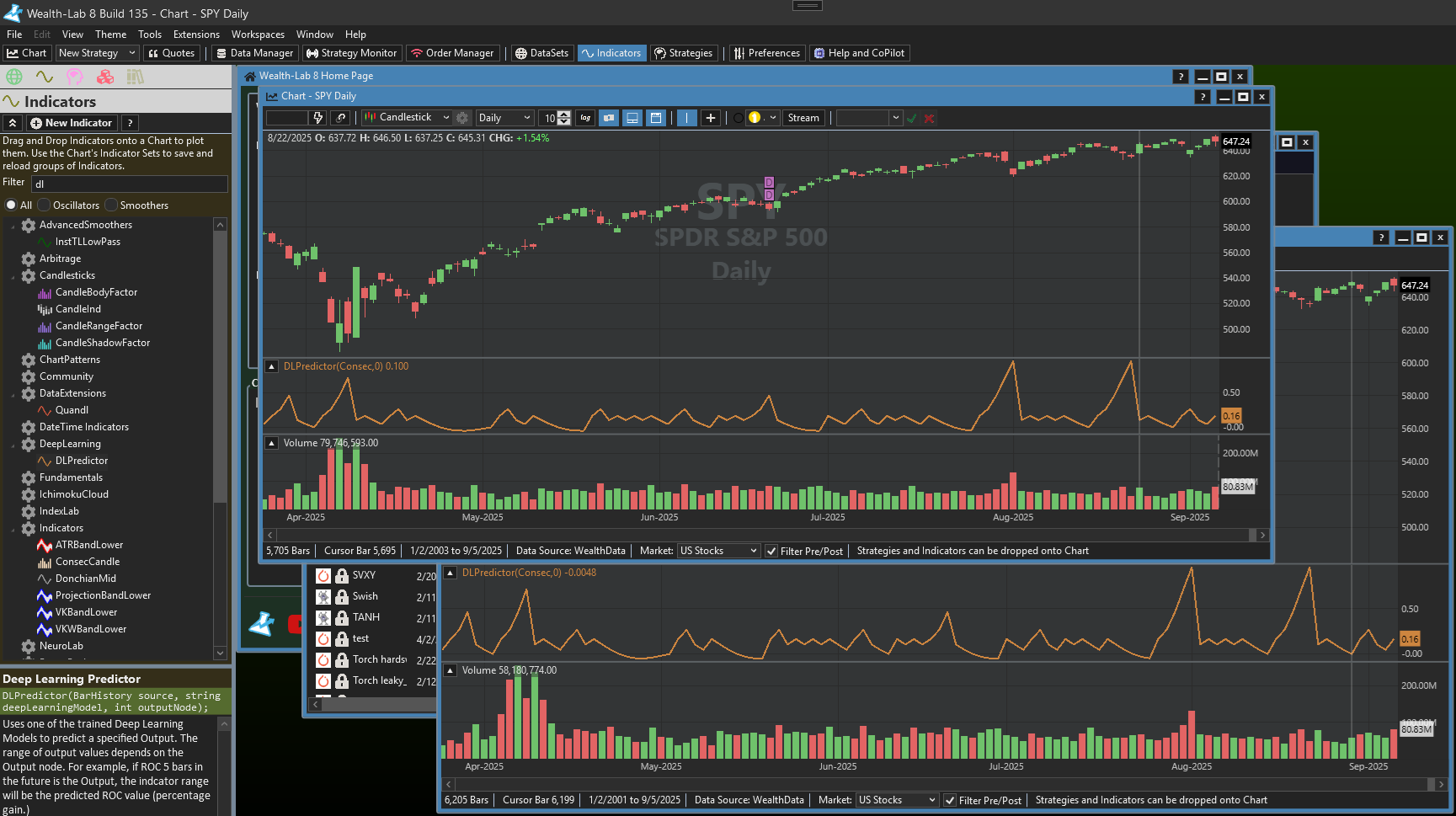 There are no indicators with parameters greater than 200 bars at the DLPredictor indicator input.
