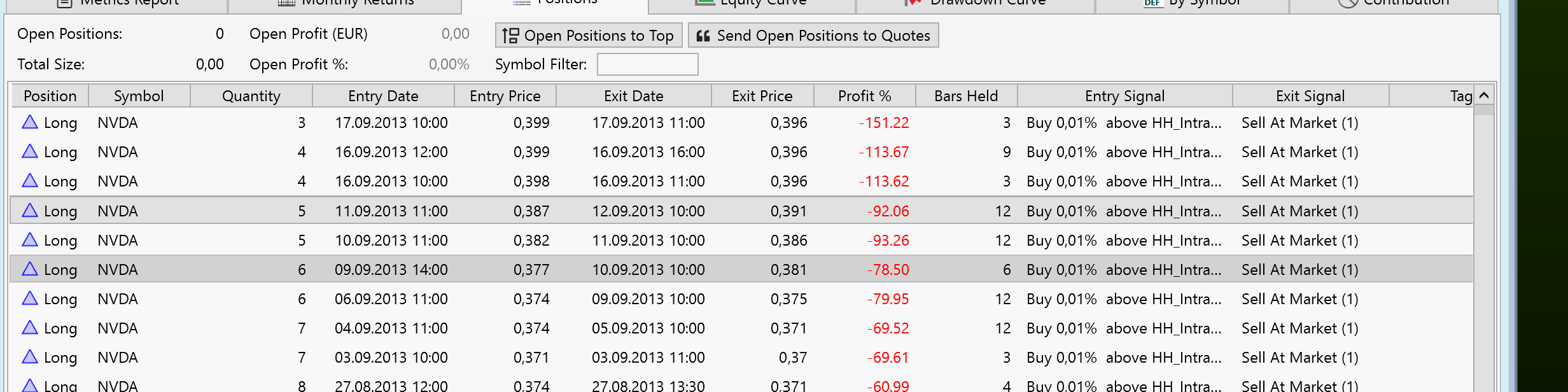 I'm currently backtesting day trading strategies. However, it seams to be an error in the backtest results (or do I need special preferences...?).