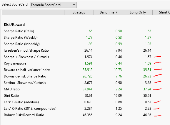 Using the example above, there is a relevant difference between 0.665 and 0.674 (see Lar's K-Ratio) which may be of interest during strategy development. It is the small steps and improvements which lead to perfection.