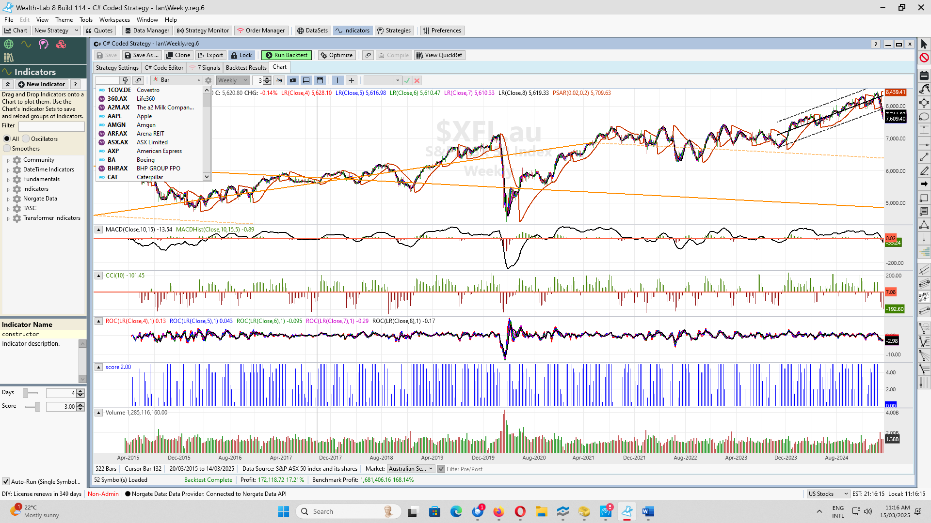 Load more data if required and scroll until you can see the middle regression line and click on it.