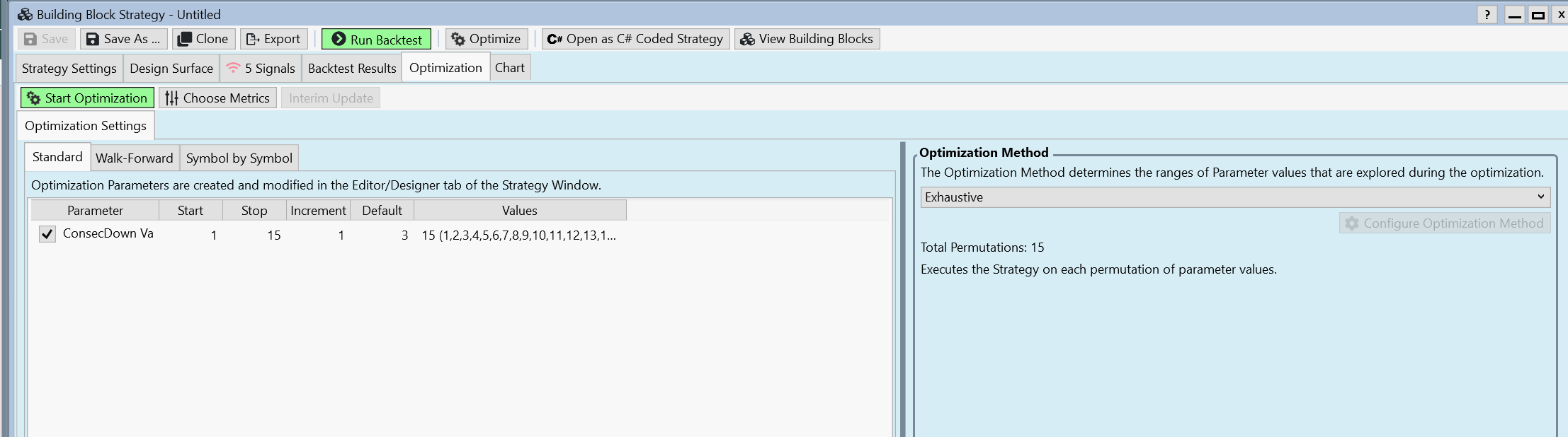 The old backtesting result with 3 ConsDown is displayed, although the backtest ran over 4 ConsDown.