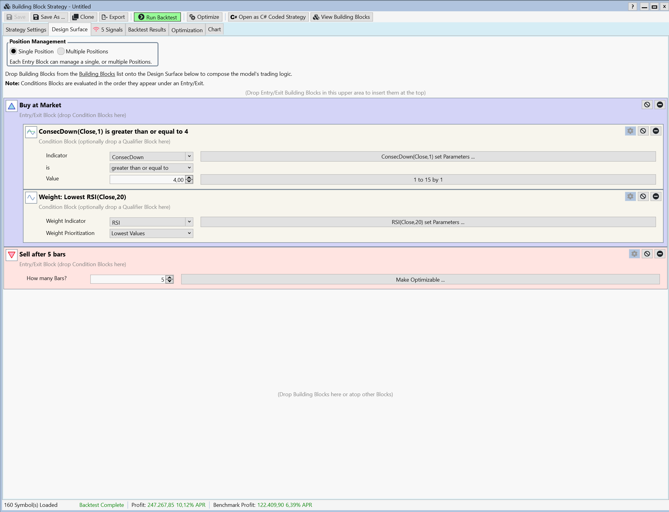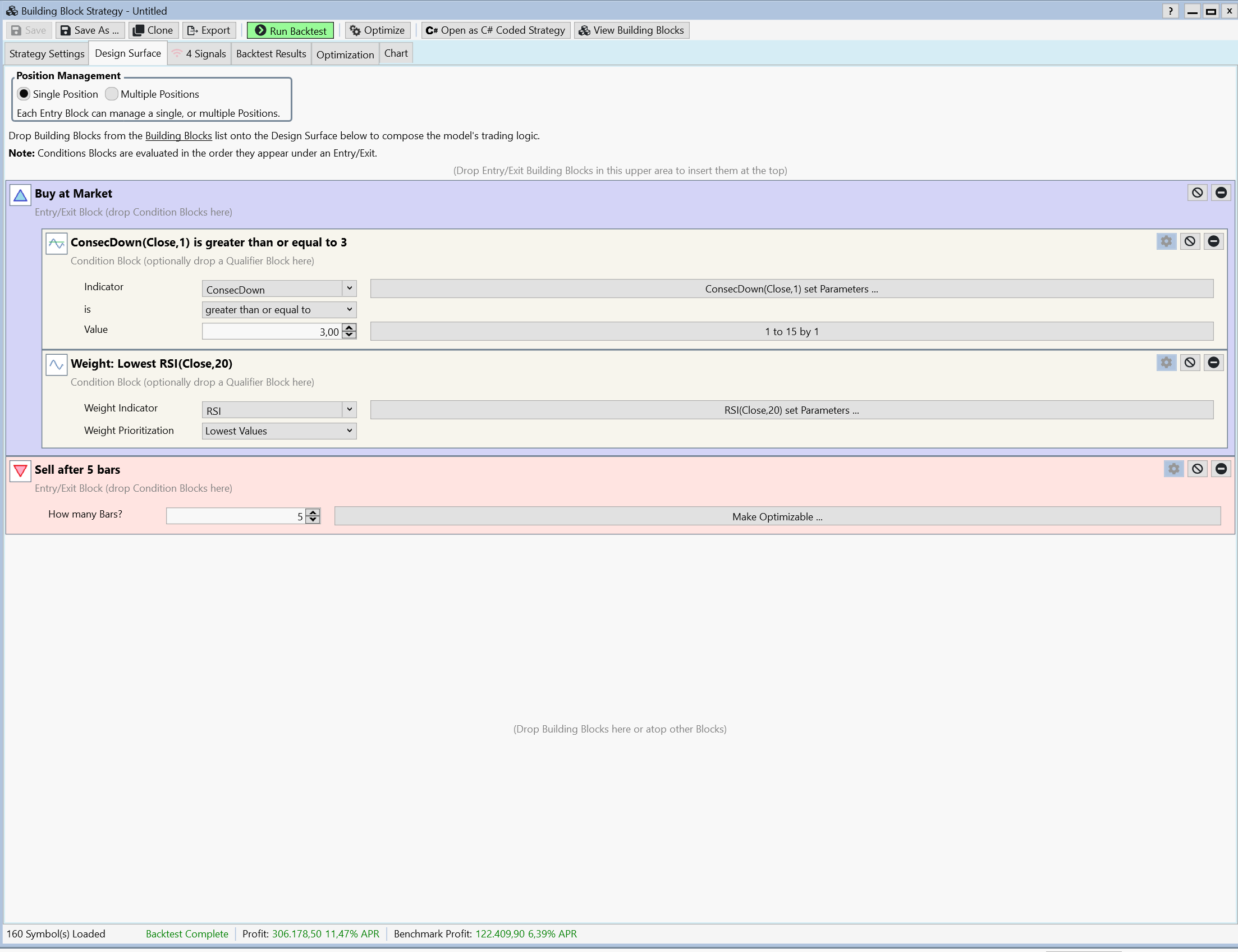 Now the backtest gives different results than in the first backtest shown above (also with 3 ConsDown). Despite the identical strategy, the results suddenly diverge.