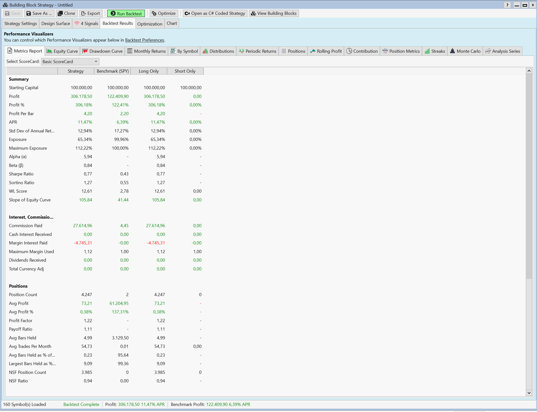 The strange thing is that the deviations are retained. If you save the optimized strategy and call it up again later, the results shown after the optimization run are retained. If you recreate the strategy with new blocks and then run a backtest (without having previously optimized it), the old results reappear. Optimization seems to be changing the strategy.