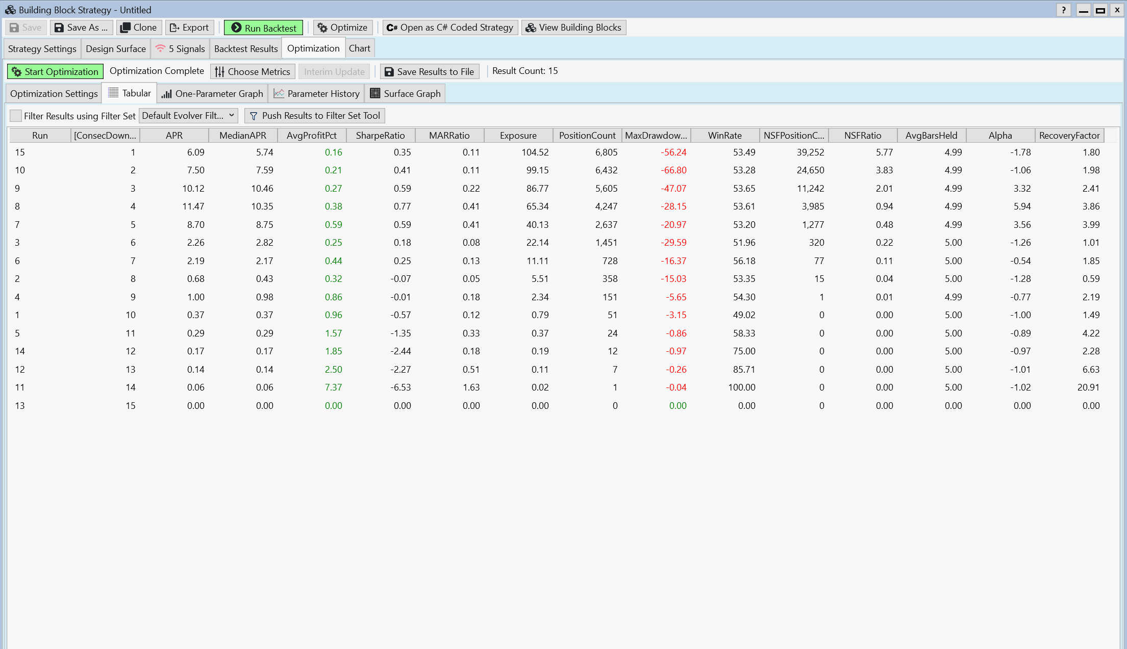 In addition, the results do not match the results of the optimization run. Here is the optimization run again.