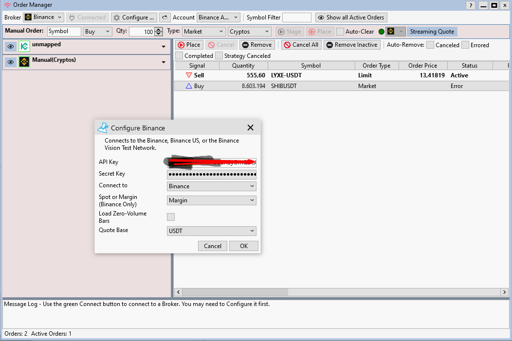 Hi, I have a question, I know that Kucoin does provide margin trading and works well, but what about Binance? I when I try to put money on either cross margin or futures account, nothing happens, but in Wealthlab, under data manager, you can set the account to margin type?