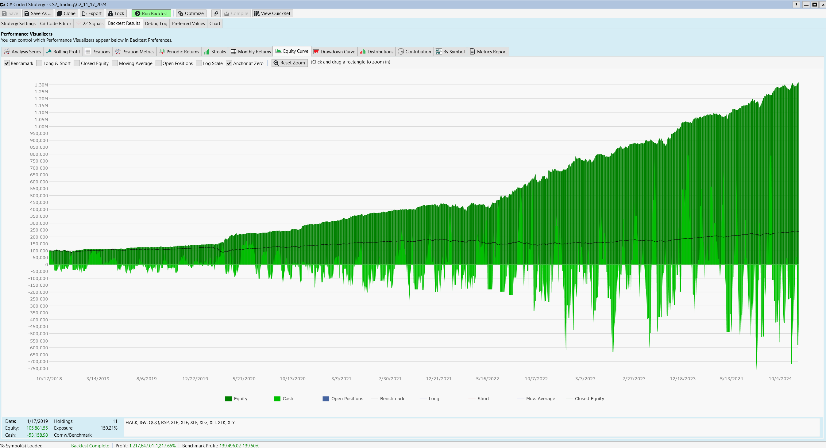 These choices are for demonstration purposes only. Of course you could start with other hold times, even dynamic ones. Or a completely different portfolio like an ETF selection, Cryptos, futures, etc...