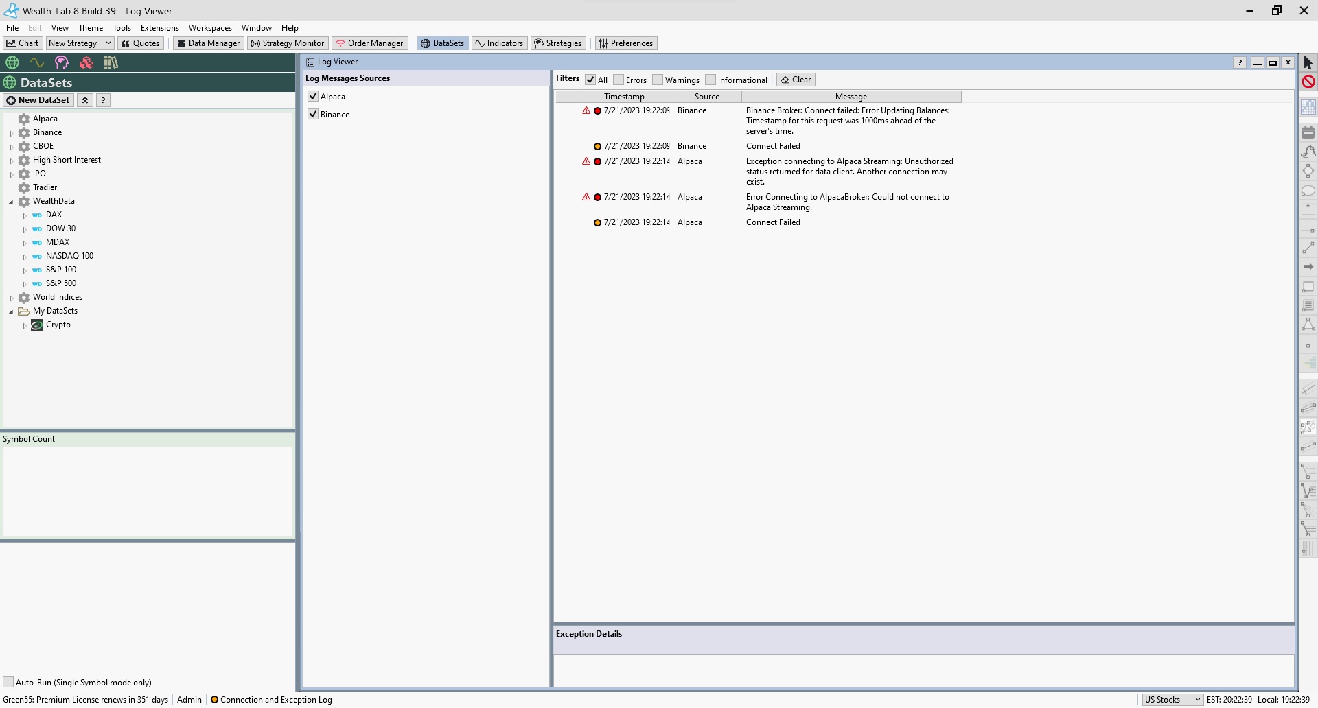 at WealthLab.Alpaca.AlpacaBroker.Connect()